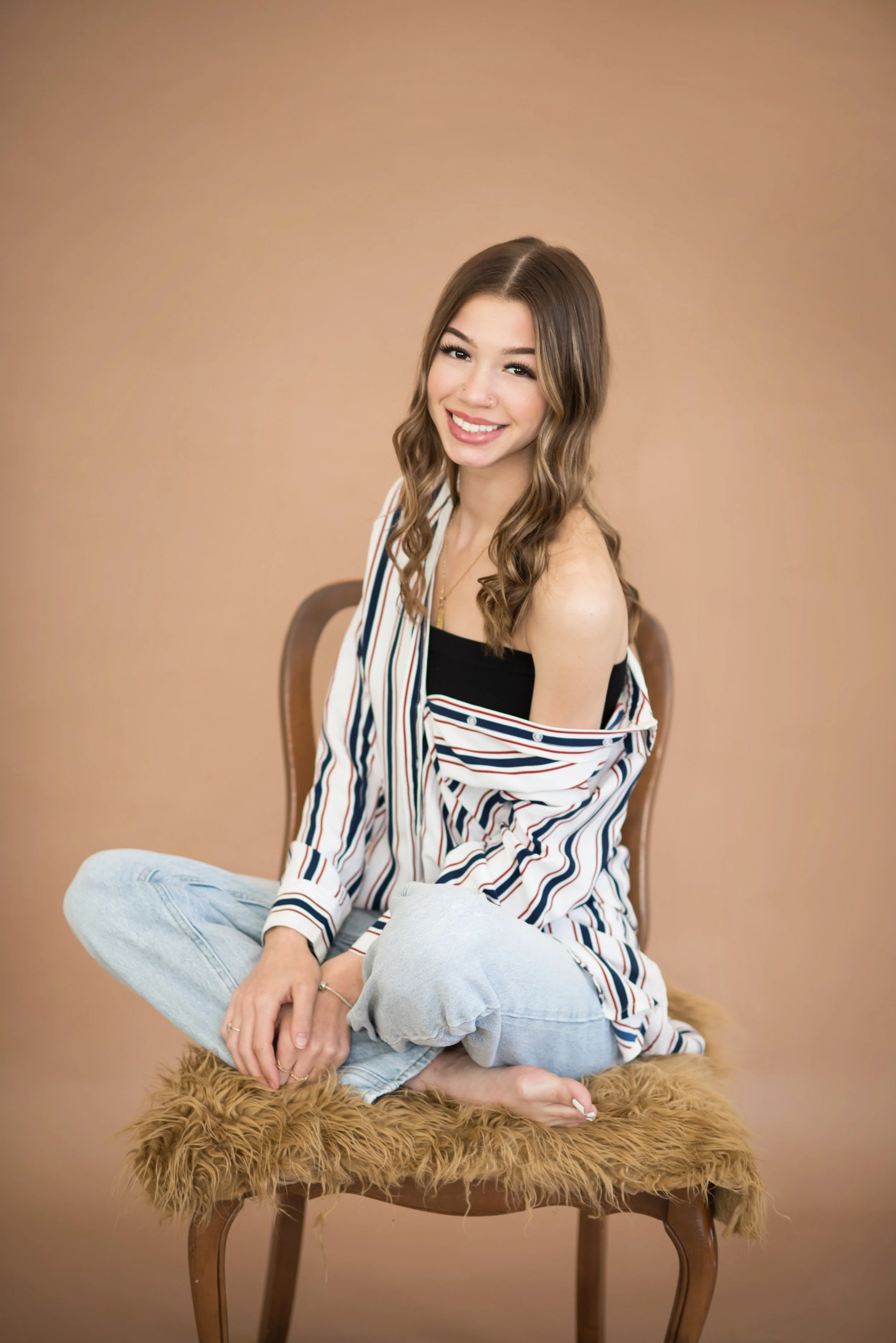 I love using different props, chairs, simple and clean backdrops to compliment outfits.