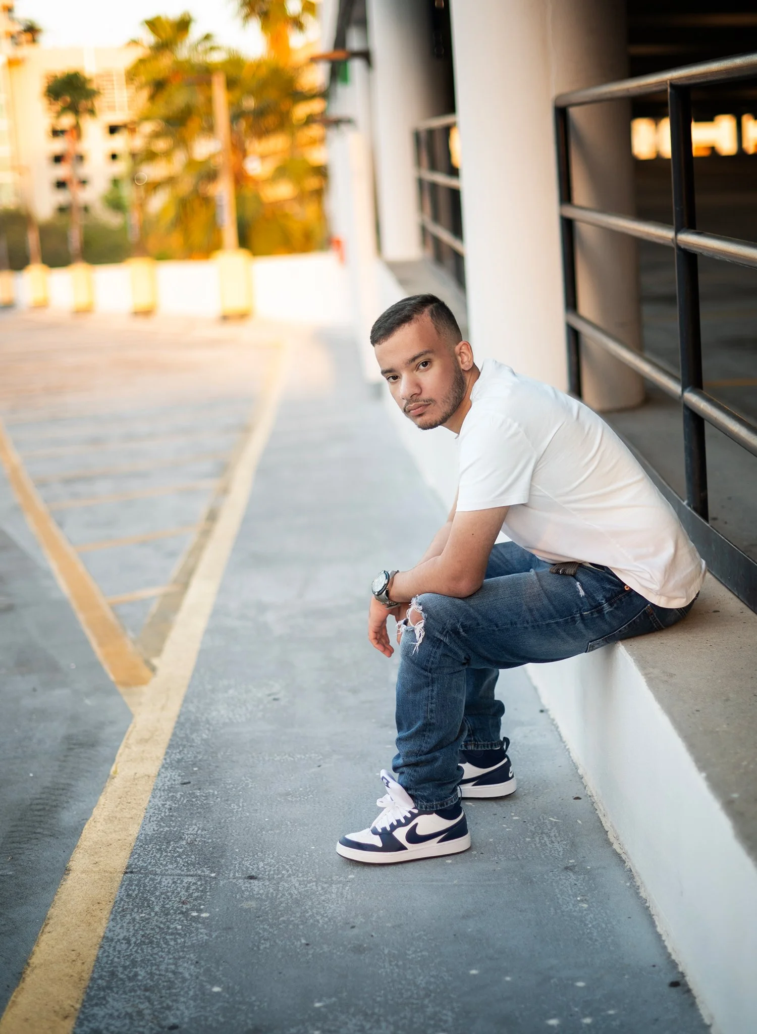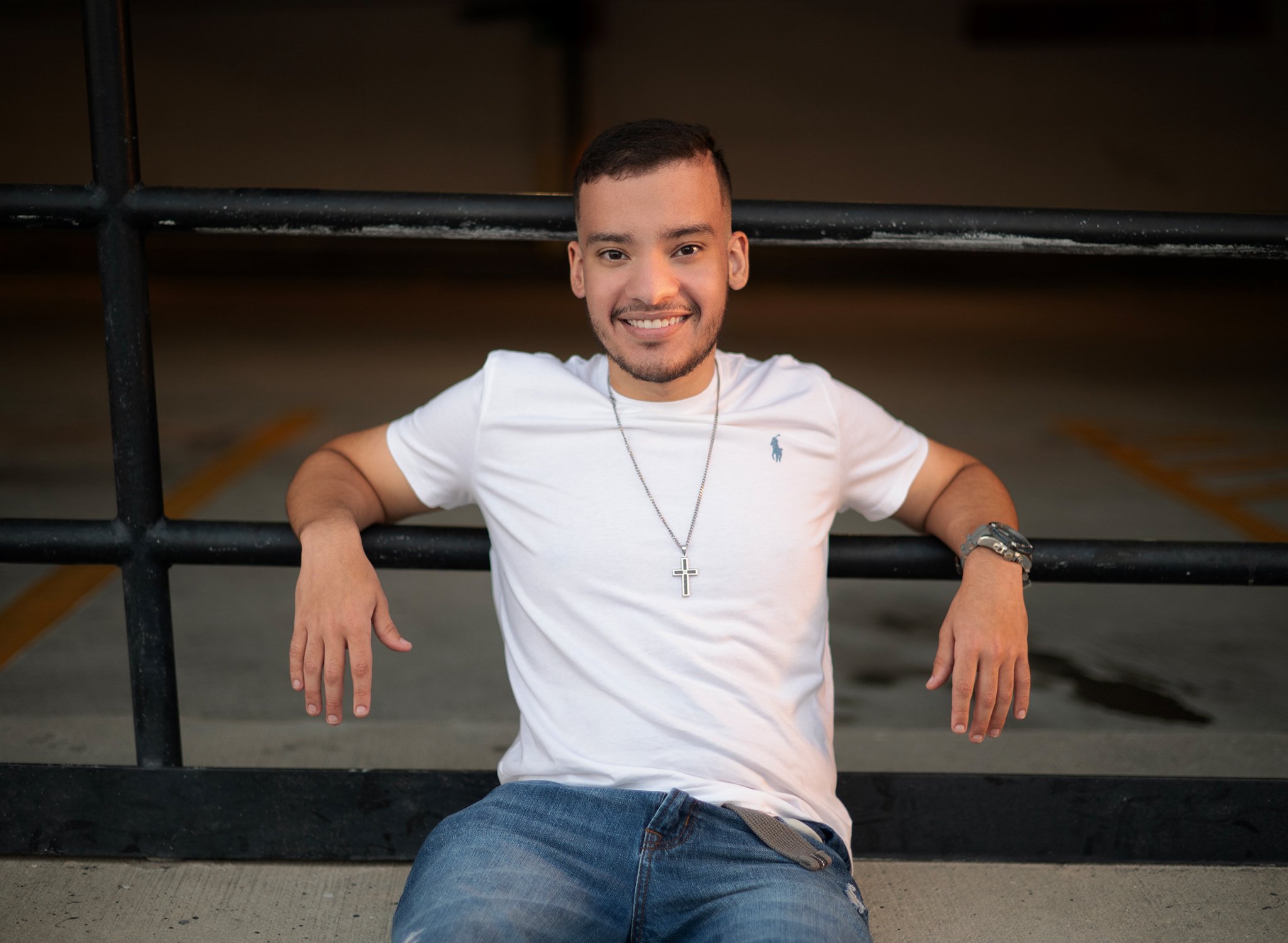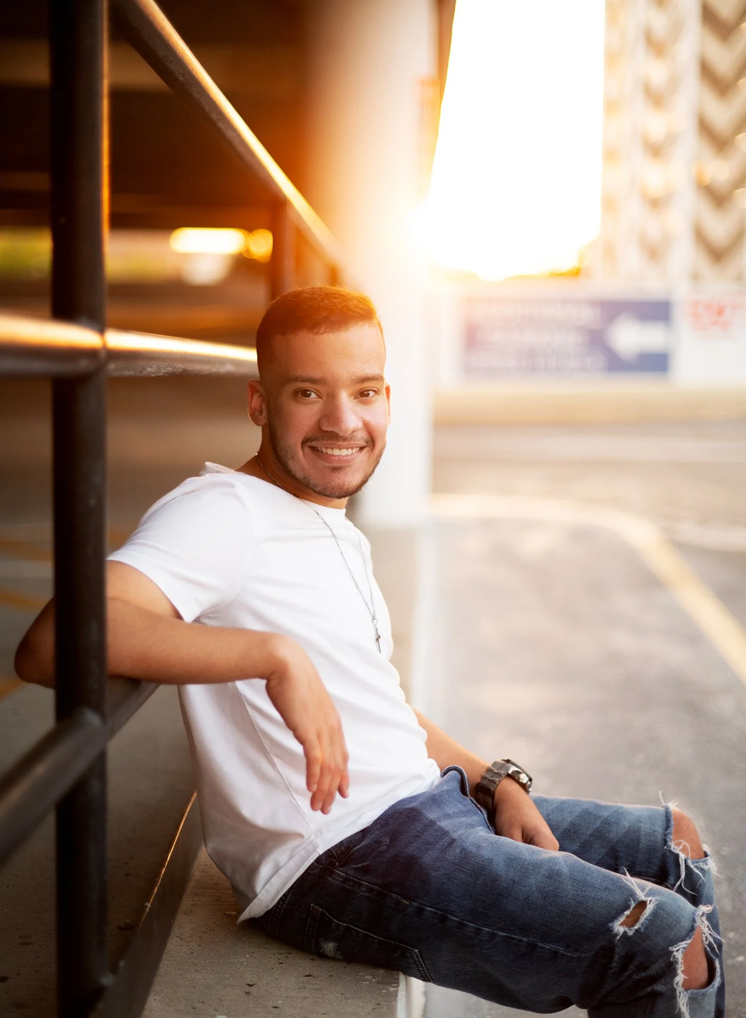 Tampa high school senior photography session at parking garage.