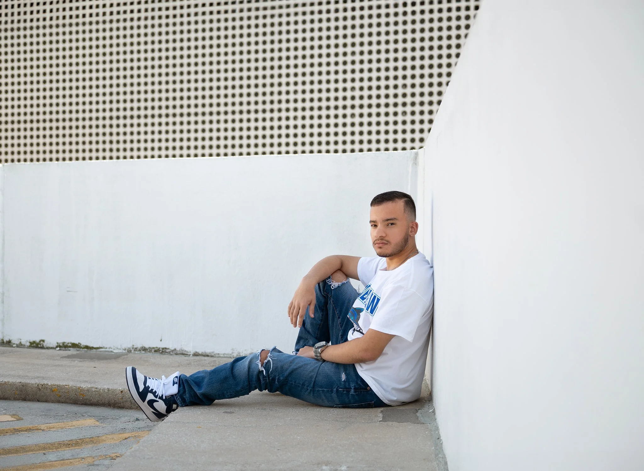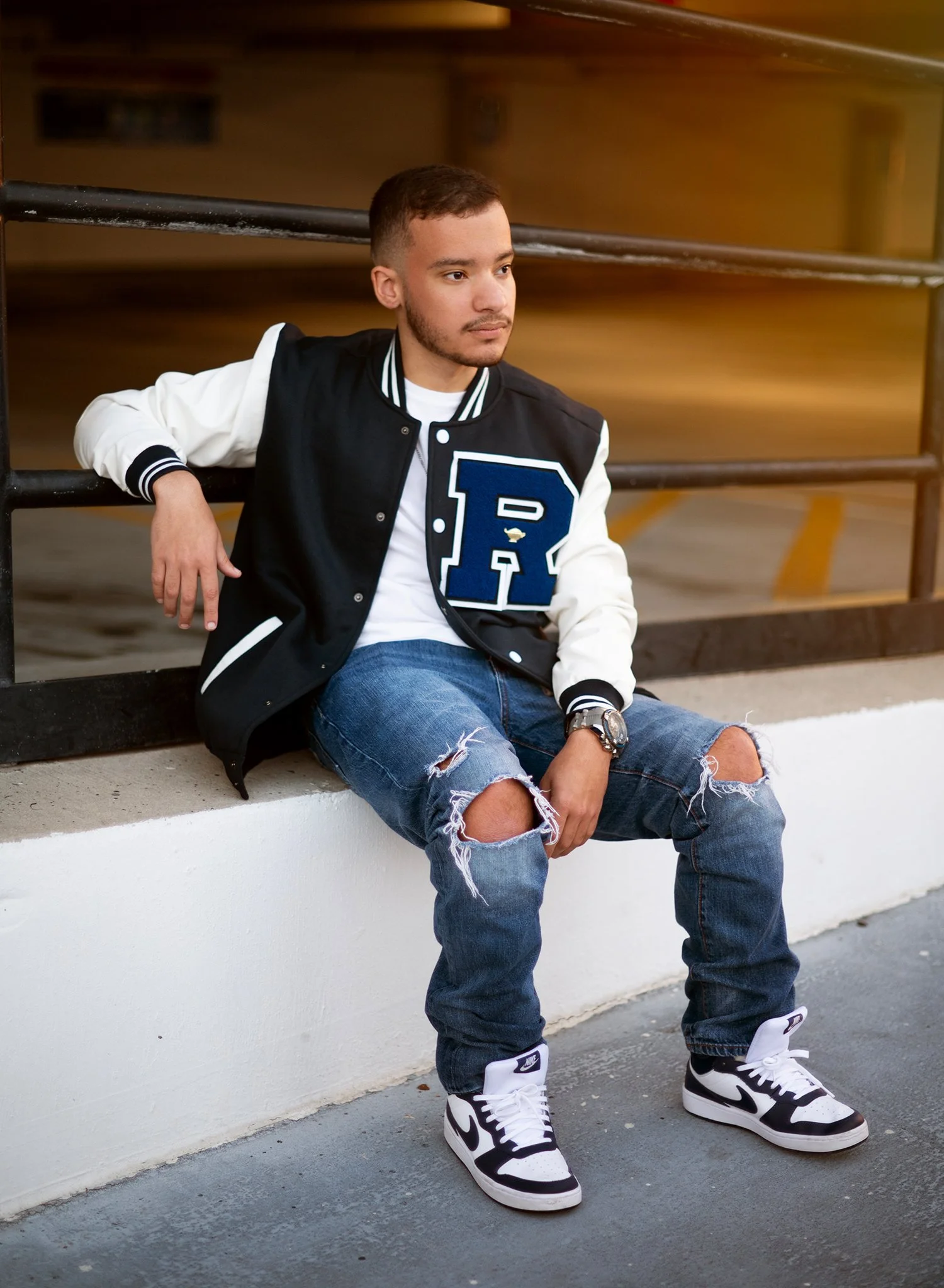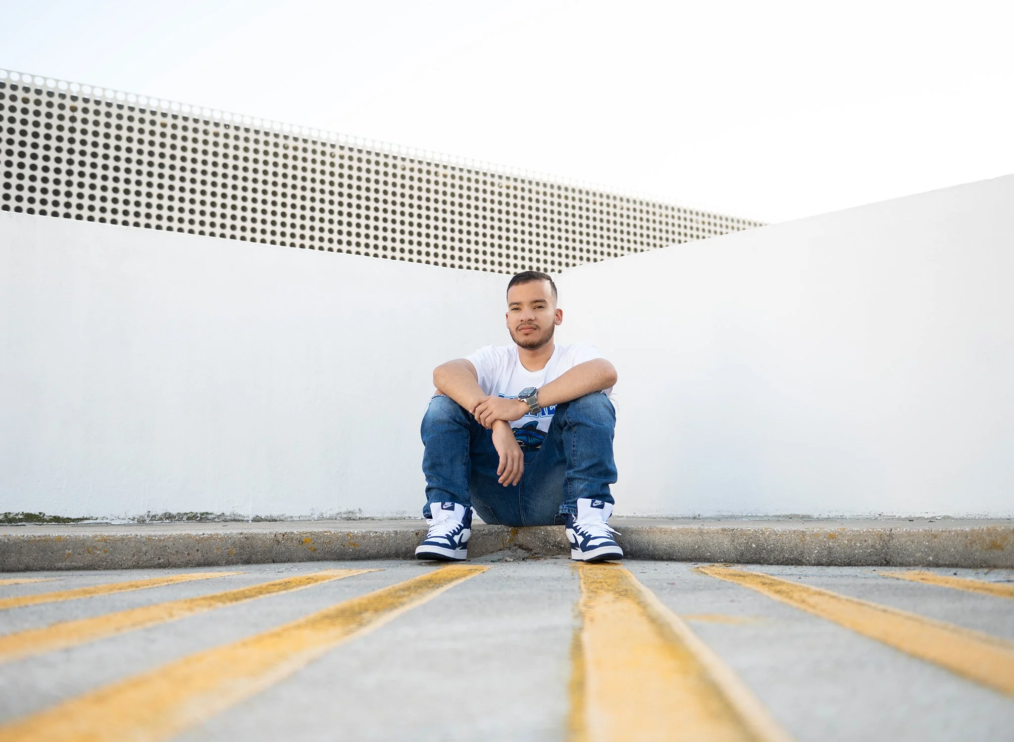 Tampa high school senior photography session at parking garage.